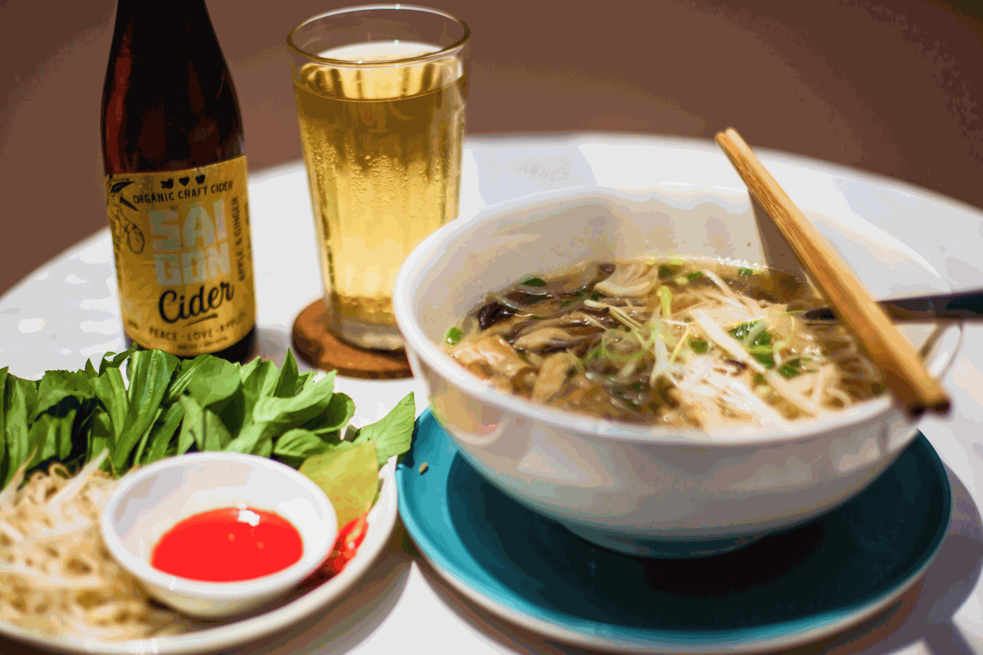 Saigon Cider’s Apple & Ginger has a gentle heat and aromatic profile that matches beautifully with the layered flavours of phở.
